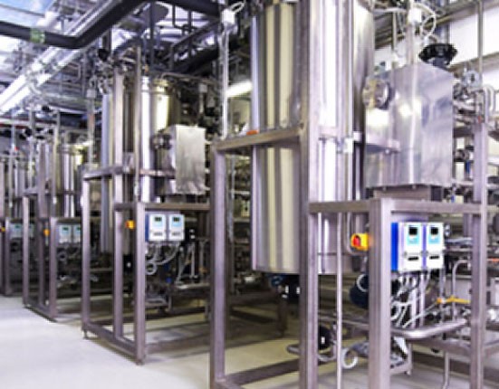 A Sterilization In Place (SIP) installation will usually comprise one or more pieces of processing equipment, such as a fermentor and a centrifugal separator to handle harvests, connected by rigid stainless steel or flexible Teflon®-lined piping. The installation will be capable of withstanding steam pressure up to, say, 20 psi and corresponding sterilizing temperatures in the 121° to 125°C range. There will be a supply of steam suitable for the procedure, under pressure control and a "trapped" drain at a low point on the system, which will pass condensed water, but not steam. The safe operation of the installation will be controlled by suitable safety valves or "burst disks".